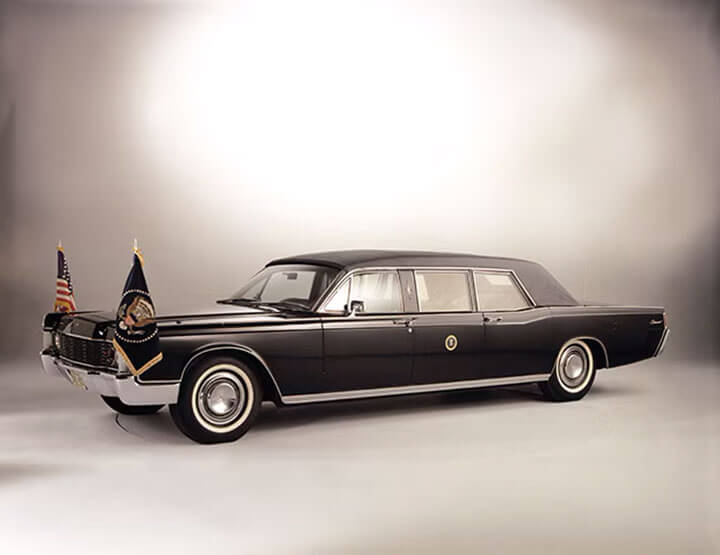 La limusina Lincoln Continental 1968 tenía la seguridad más avanzada, comunicación y características de ingeniería que cualquier automóvil había utilizado alguna vez para una función oficial en la Casa Blanca. Esto incluyó más de dos toneladas de ensable, un toldo transparente y ventanas más gruesas que el vidrio utilizado en los aviones de combate de la Fuerza Aérea de Estados Unidos. Los neumáticos con discos de acero de caucho con borde interior permitían que el vehículo pudiera viajar con neumáticos planos a velocidades máximas de hasta 50 millas.